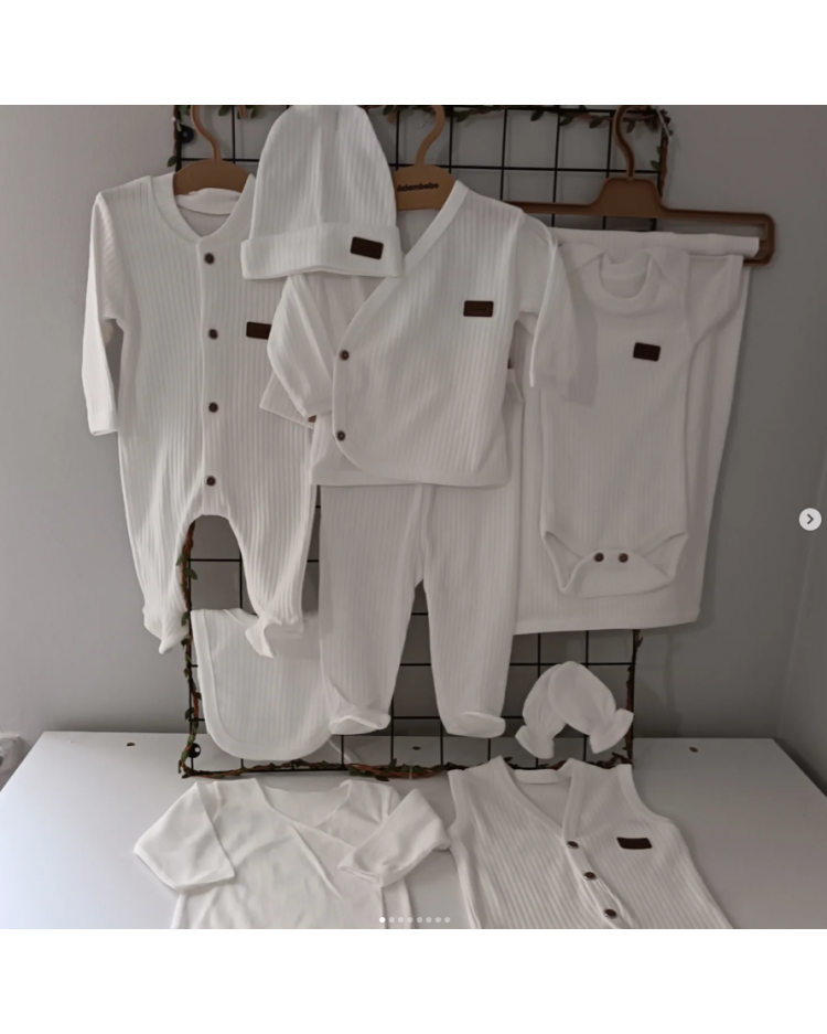 9 FARKLI RENK SEÇENEĞİ İLE ASKIDA ORGANİK ONLU HASTANE ÇIKIŞ SETLERİ