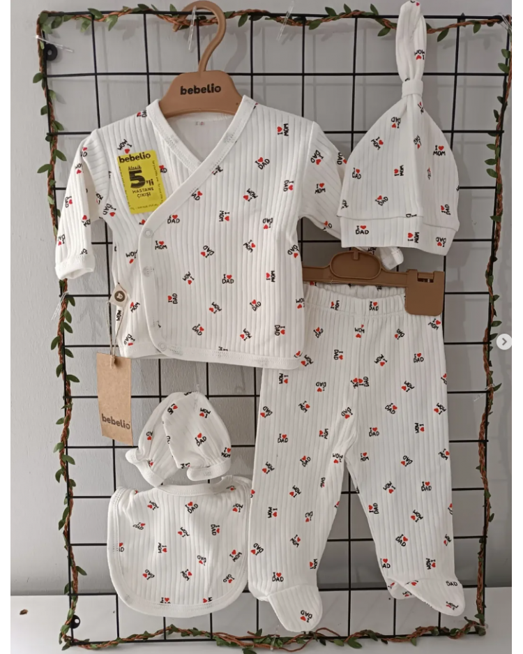 Bebelio Organik Fitilli Penye Beşli Zıbın Takımı Çeşitleri / MAM DAD YAZILI