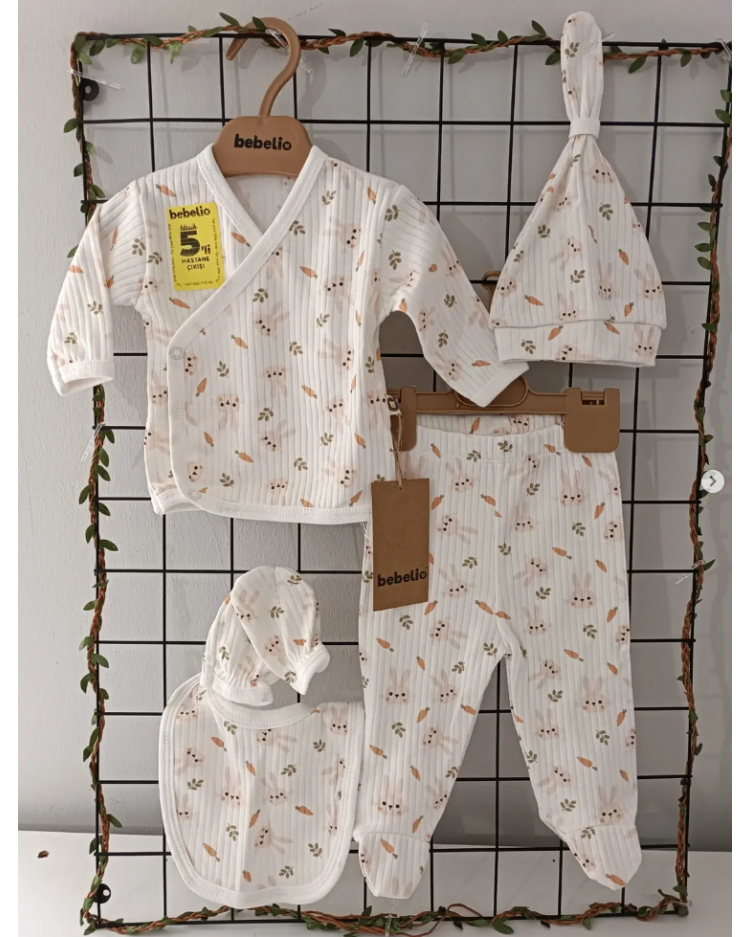 Bebelio Organik Fitilli Penye Beşli Zıbın Takımı Çeşitleri / PEMBE HAVUÇ TAVŞANLI