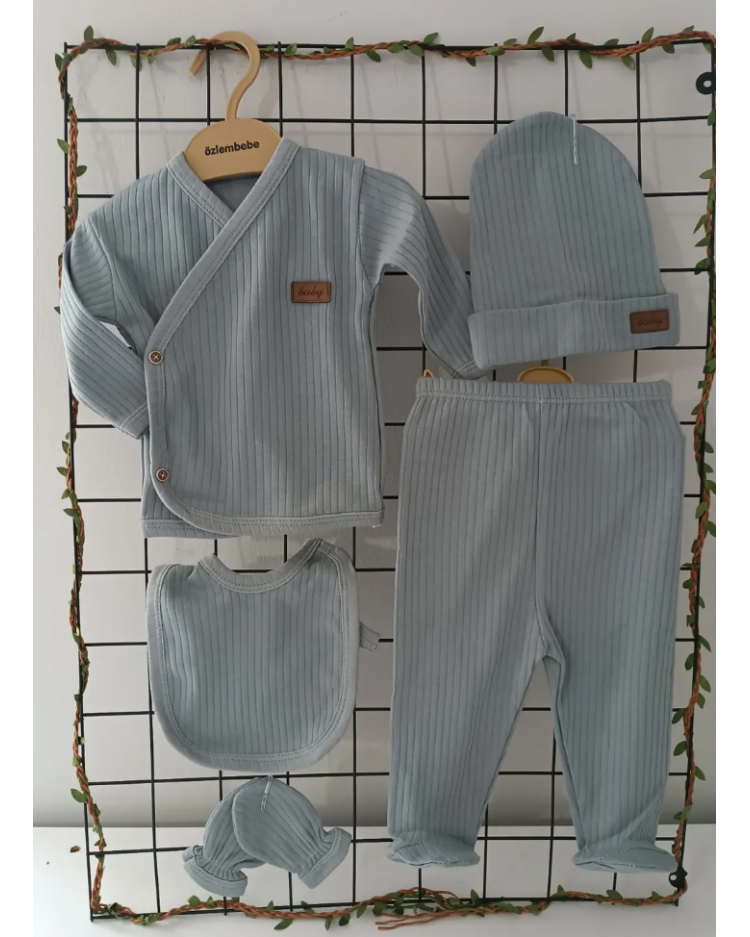 Özlem Bebe Organik Fitilli Penye Beşli Zıbın Takımı Çeşitleri / GRİ