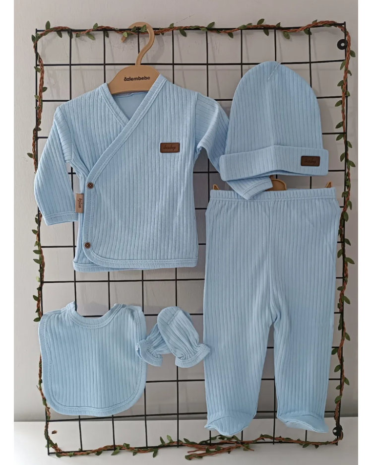 Özlem Bebe Organik Fitilli Penye Beşli Zıbın Takımı Çeşitleri / MAVİ