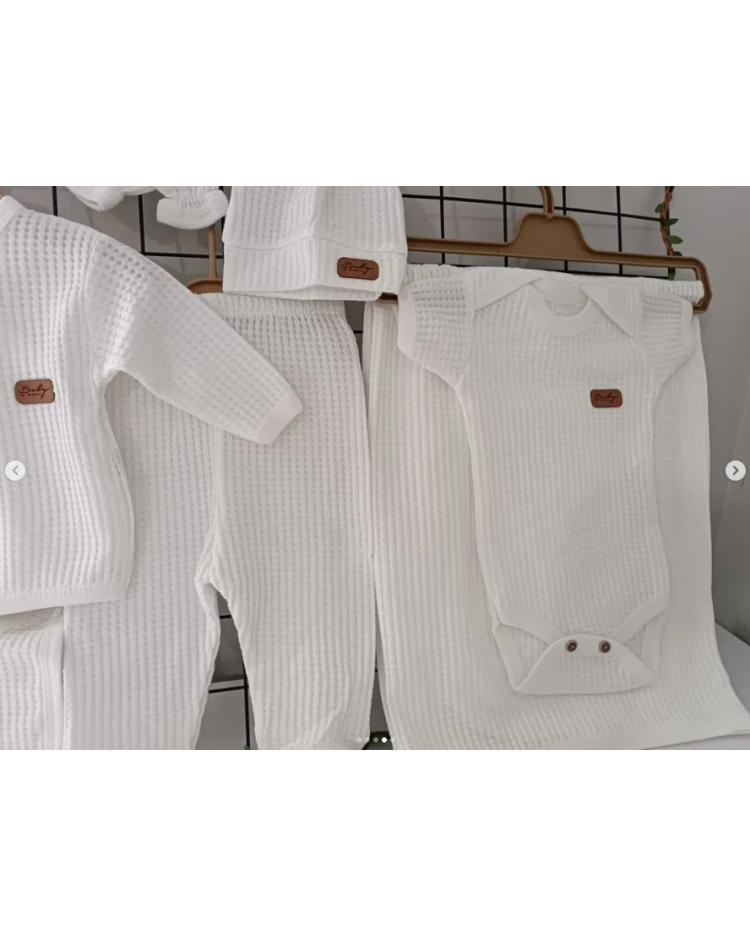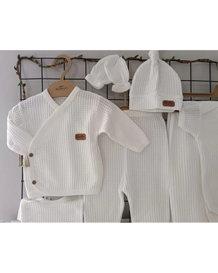 Tamamen pamuklu organik petek doku battaniyeli yedili hastane çıkışı / BEYAZ
