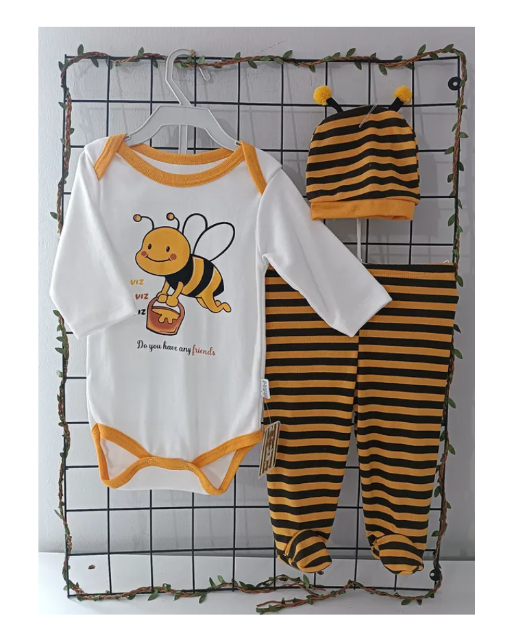 KAMPANYALI MİNİBİRD BADİLİ ŞAPKALI ÜÇLÜ PENYE TAKIM ÇEŞİTLERİ/ARI DESEN