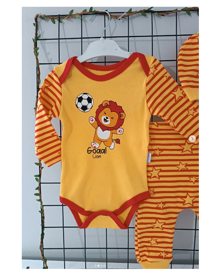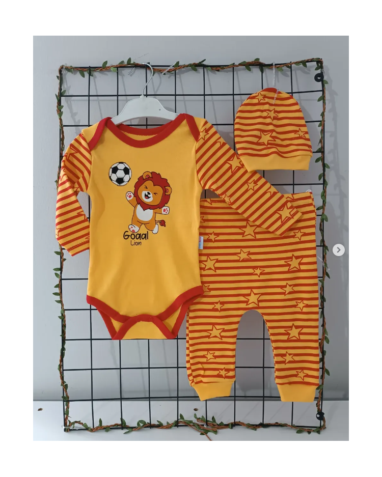 Taraftar badili şapkalı üçlü penye bebe takım çeşitleri/SARI KIRMIZI