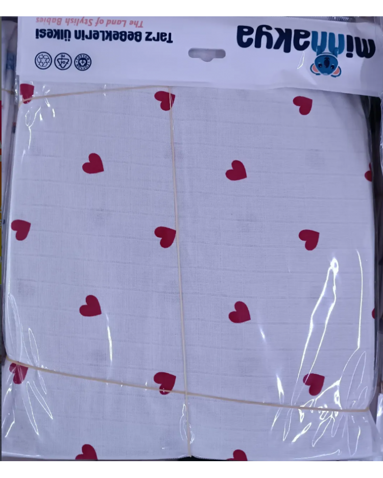 80*90 CM TEK KAT MÜSLİN KUNDAK ÇEŞİTLERİ / MİNİ KALP DESEN