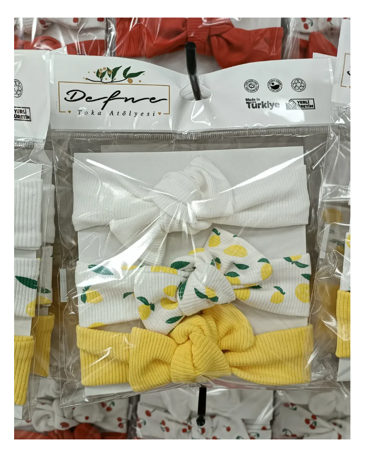 ÜÇLÜ LİKRALI 0-2 YAŞ PENYE BANDANA SET / LİMON TEMALI
