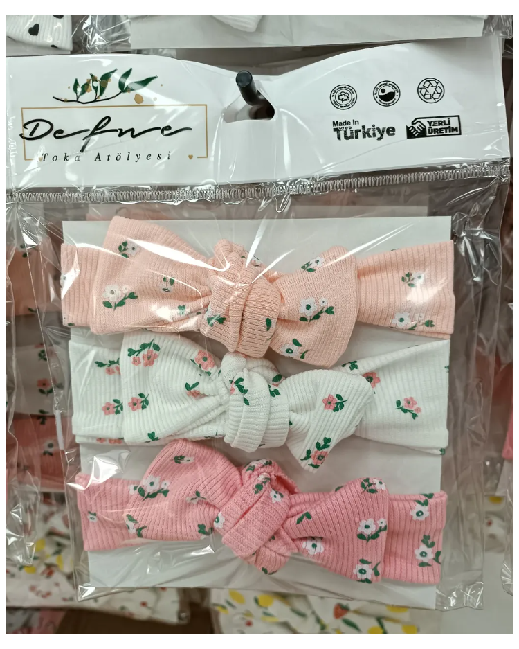 ÜÇLÜ LİKRALI 0-2 YAŞ PENYE BANDANA SET / PEMBE ÇİÇEKLİ