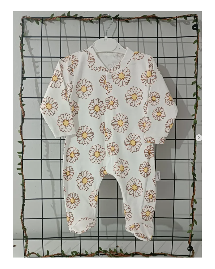 KAMPANYALI PENYE KUMAŞ YUMUŞACIK ÖNDEN ÇITÇITLI BEBE TULUM ÇEŞİTLERİ / BEYAZ ZEMİN PAPATYALI