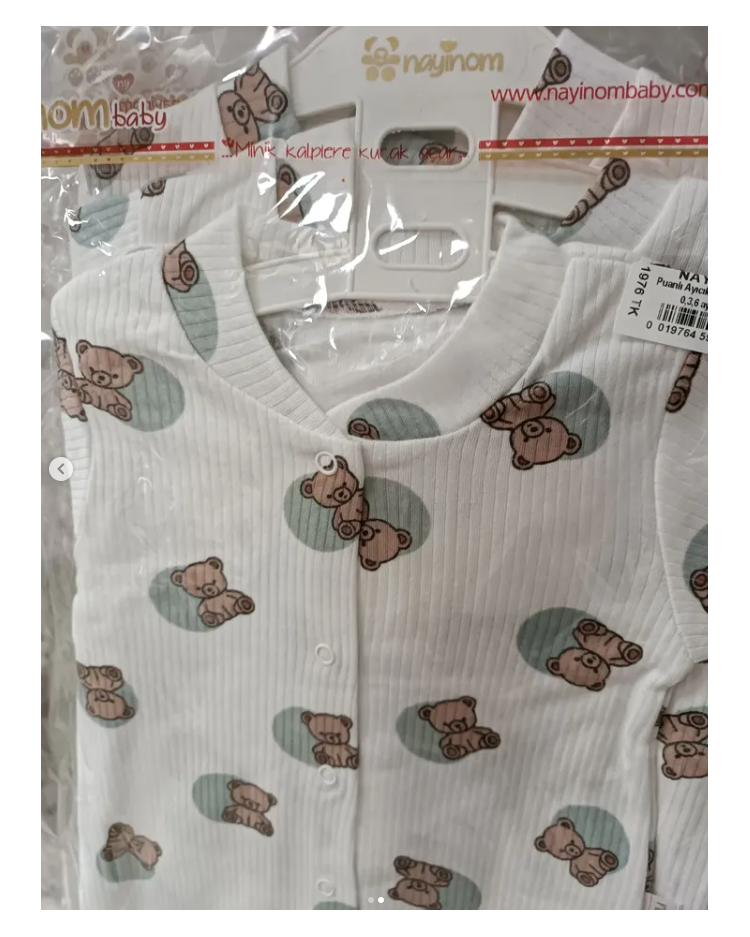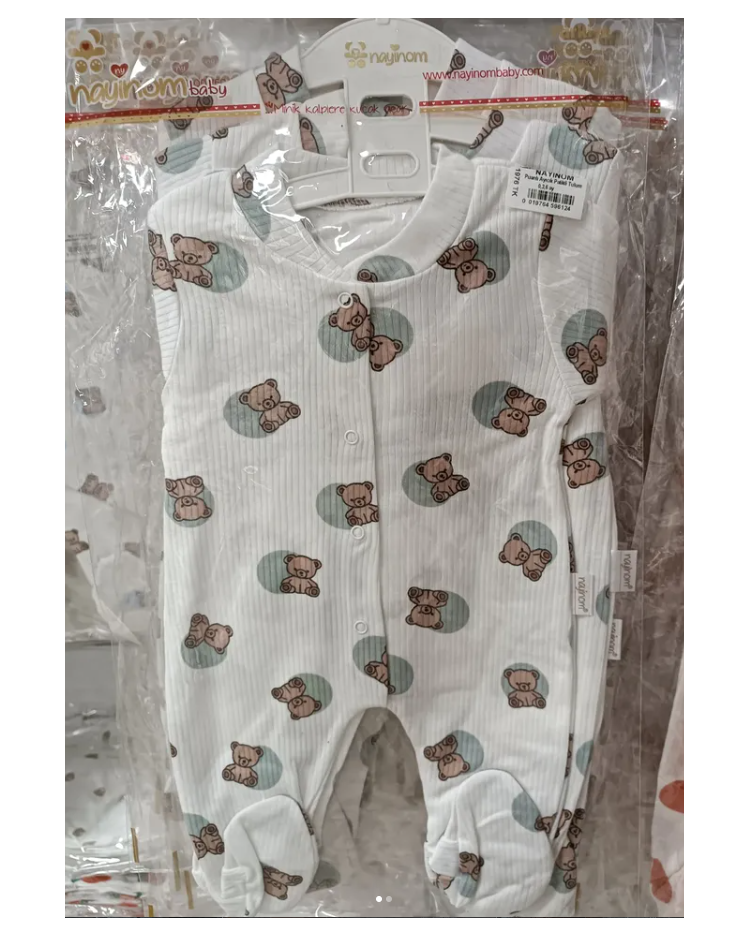 KAMPANYALI PENYE KUMAŞ YUMUŞACIK ÖNDEN ÇITÇITLI BEBE TULUM ÇEŞİTLERİ / BEYAZ ZEMİN YEŞİL AYICIK