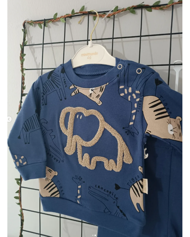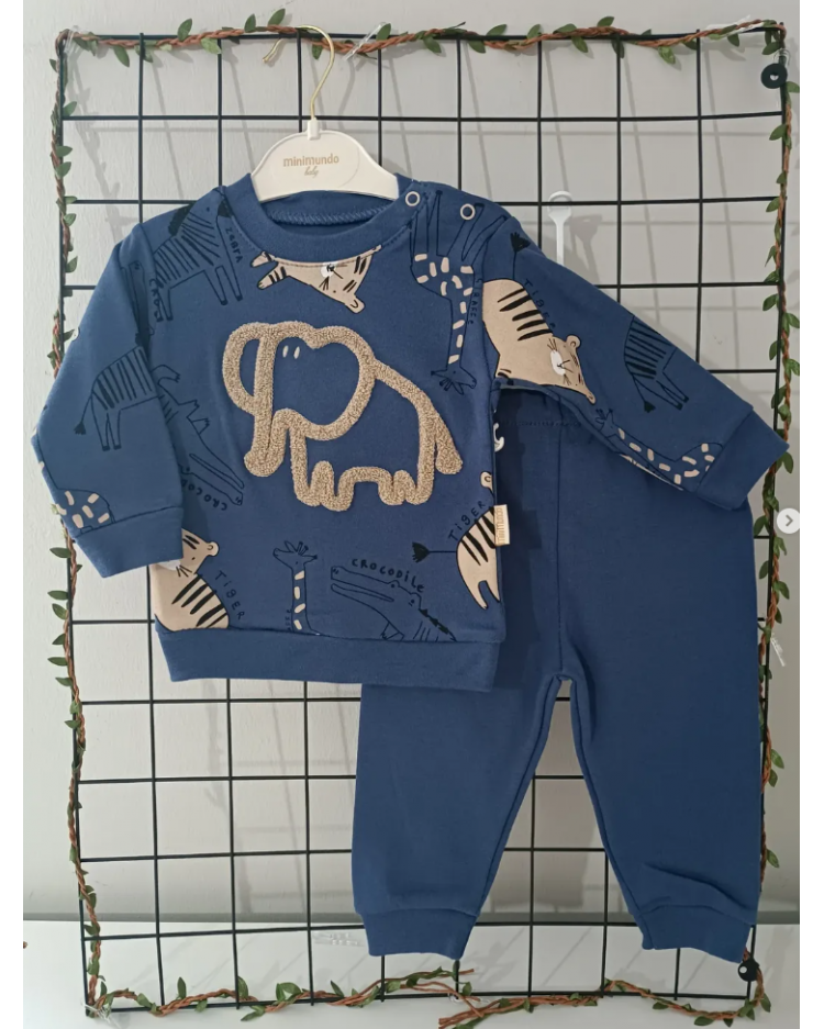 MİNİMUNDO ÜST KALİTE MEVSİMLİK PENYE BEBE EŞOFMAN TAKIMI ÇEŞİTLERİ/ LACİVERT FİL DESEN
