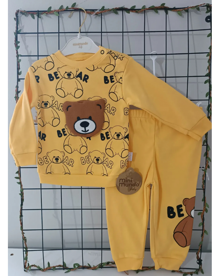 MİNİMUNDO ÜST KALİTE MEVSİMLİK PENYE BEBE EŞOFMAN TAKIMI ÇEŞİTLERİ / SARI BEAR AYICIK