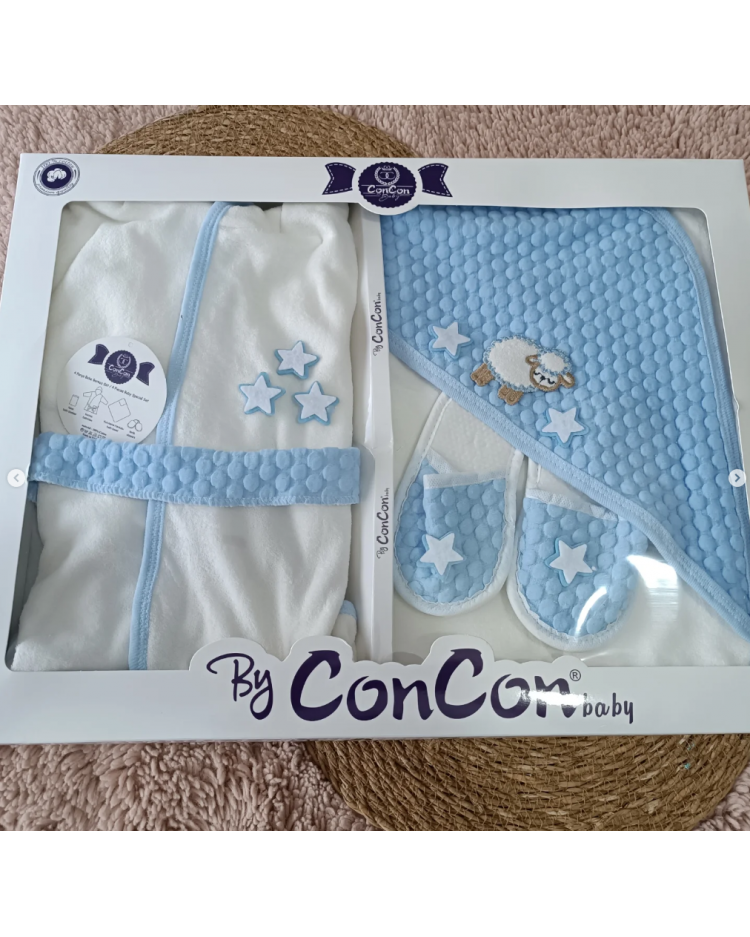 CONCON KUZULU BEBE BORNOZ TAKIMI / MAVİ