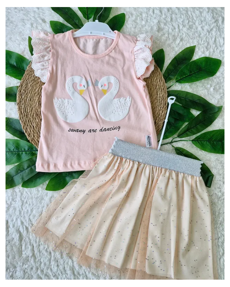 1/2/3/4 YAŞ BESBİSTO KUĞULU TÜTÜ ETEK KIZ TAKIM/PUDRA