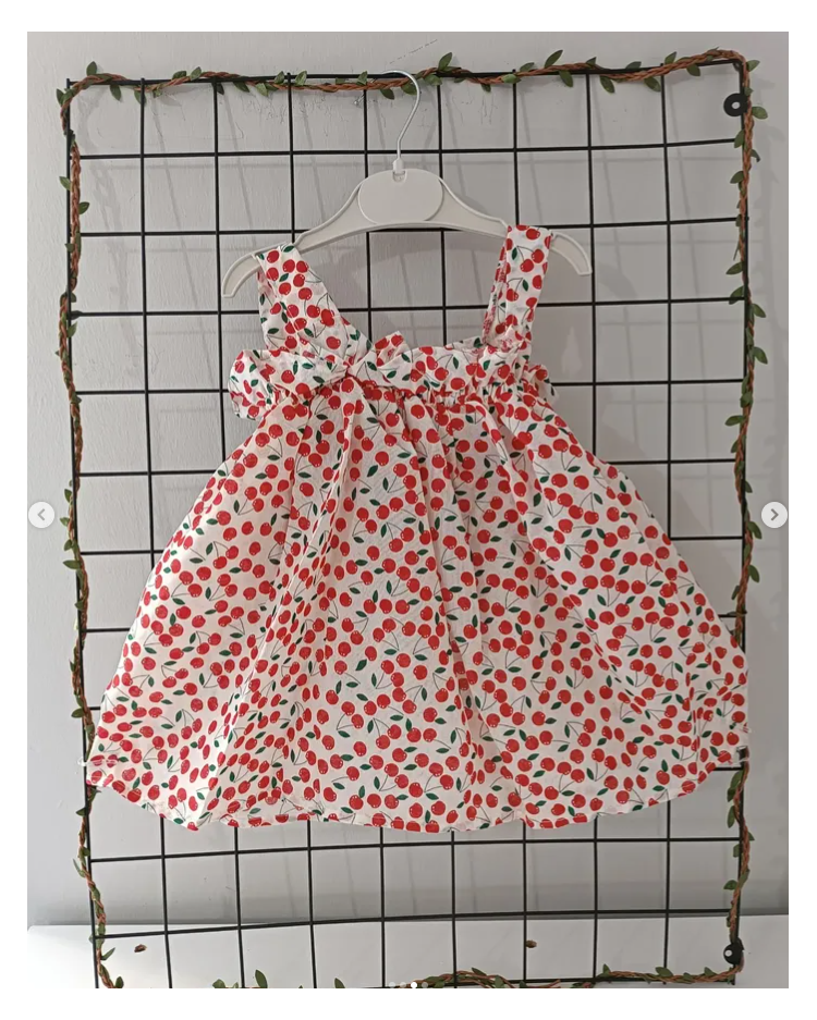 KAMPANYALI BÜZGÜLÜ MEYVELİ KETEN ELBİSE ÇEŞİTLERİ / KİRAZ DESEN