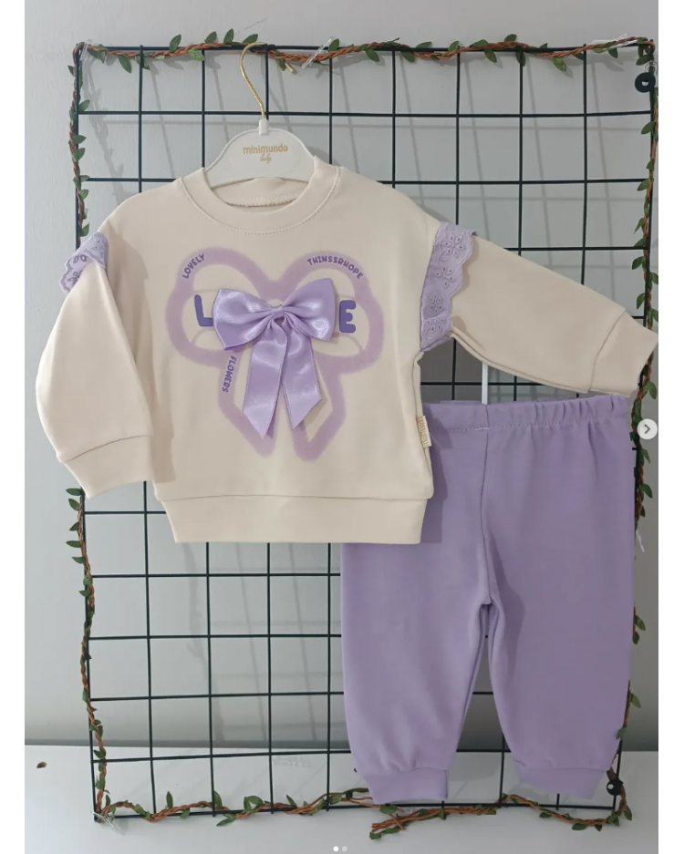 MİNİMUNDO ÜST KALİTE MEVSİMLİK PENYE BEBE EŞOFMAN TAKIMI ÇEŞİTLERİ/ MOR OMUZLARI GÜPÜRLÜ