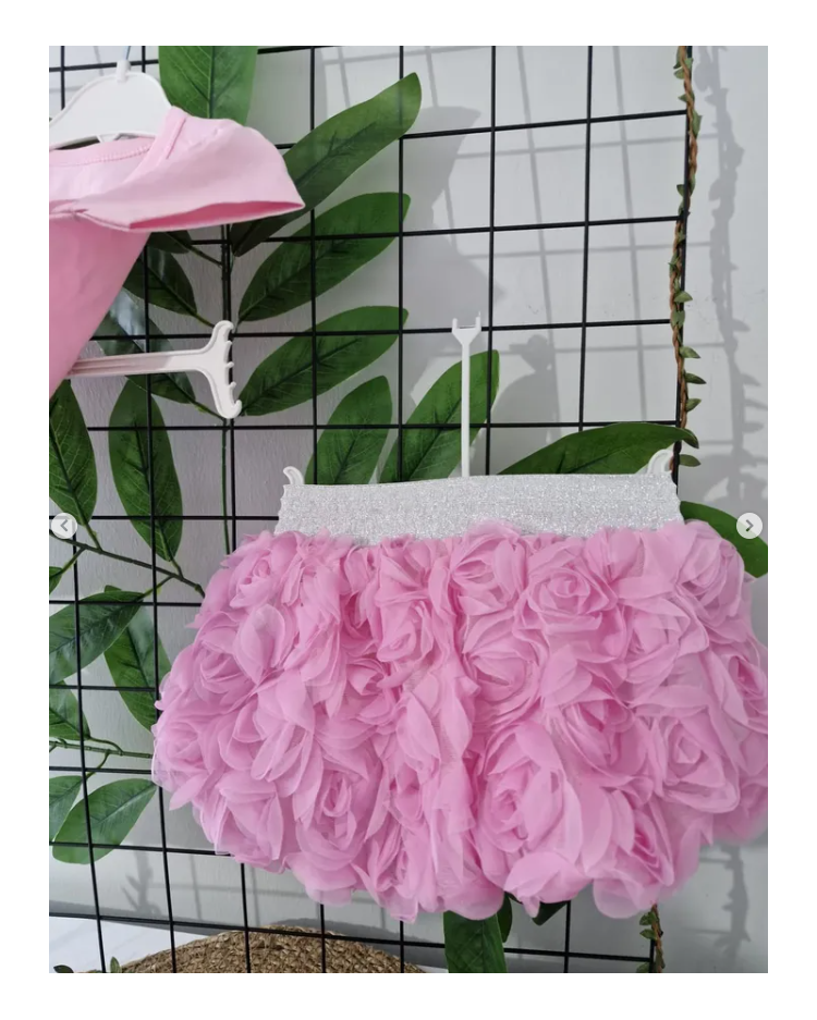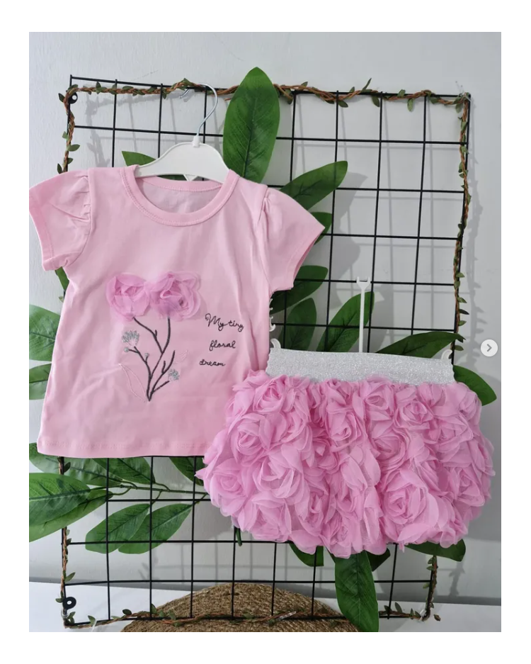 PRETTY GÜLLÜ KABARTMA ETEKLİ KIZ TAKIM