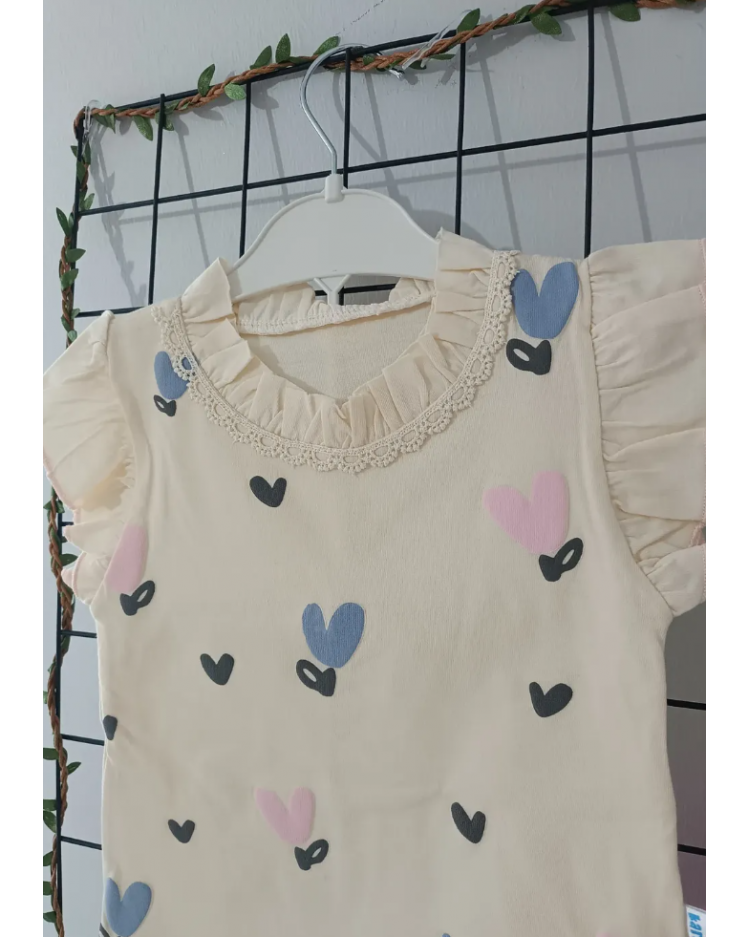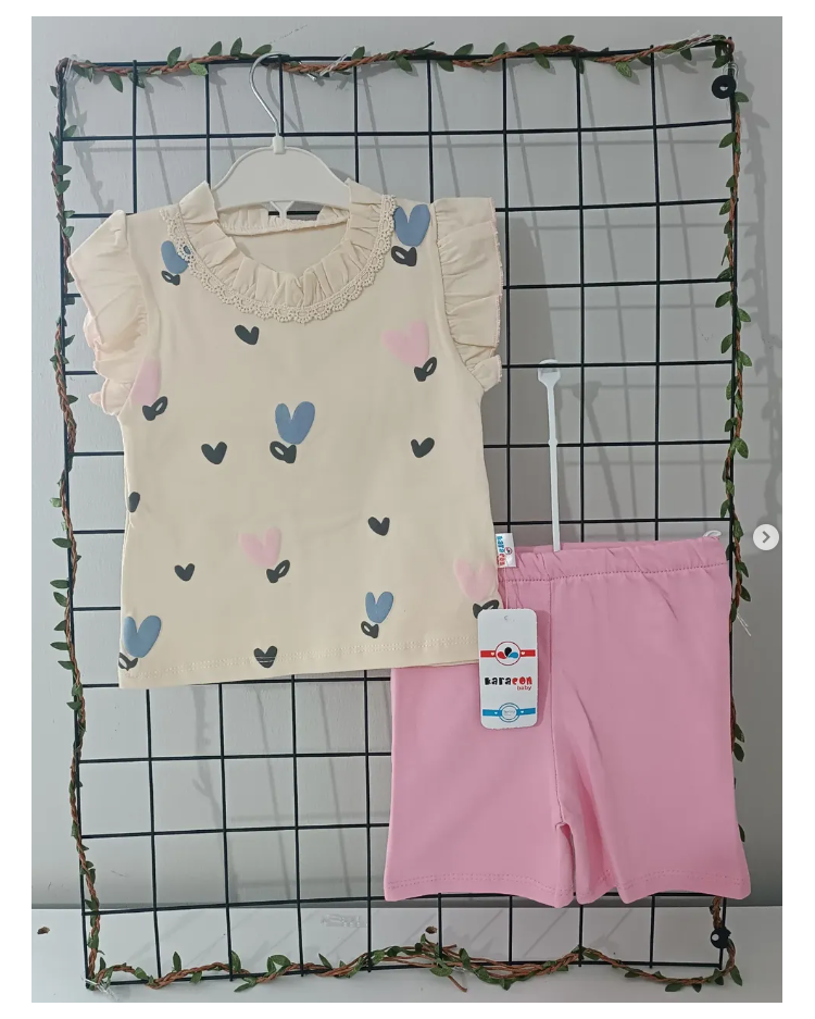 KARACON YAKASI DANTELLİ KALPLİ ŞORTLU PENYE BEBE TAKIM/ PEMBE